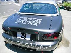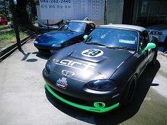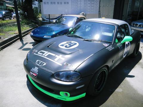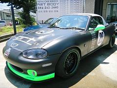 弊社仕上げのロードスターが、メンテナンスに戻ってきました! 7時間耐久レースを完走!クラス2位との事でした。 この車は弊社でオールペイント、デザインも手がけたので愛着も一入です! |