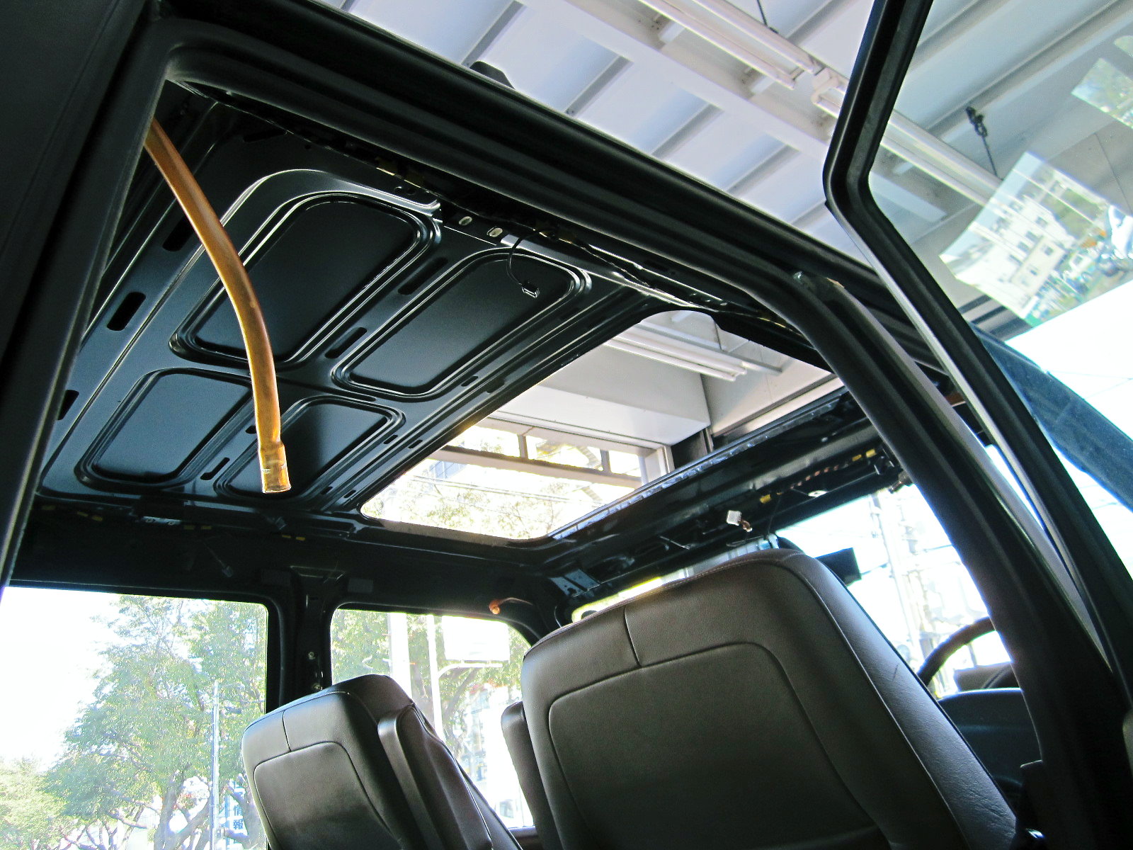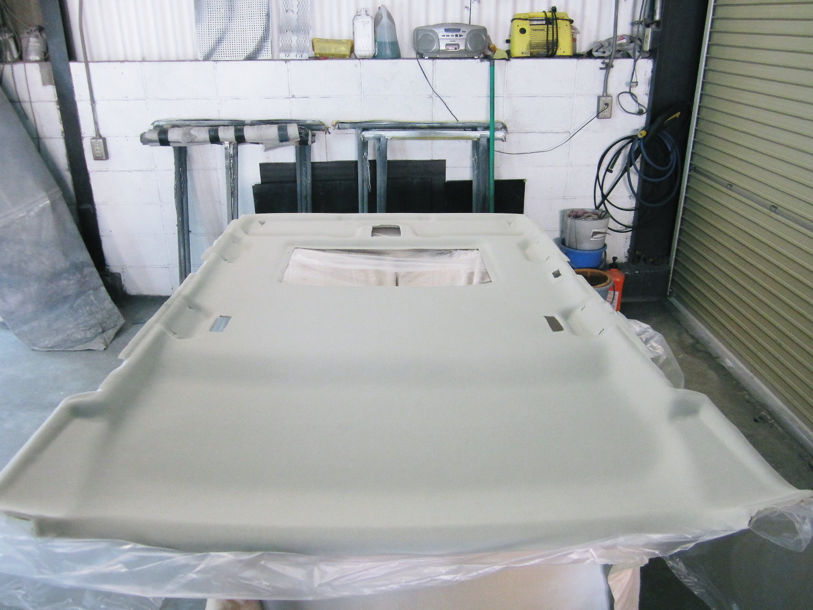 いつも使う車がこれではちょっと気になります。 早速天井の張替です! | |